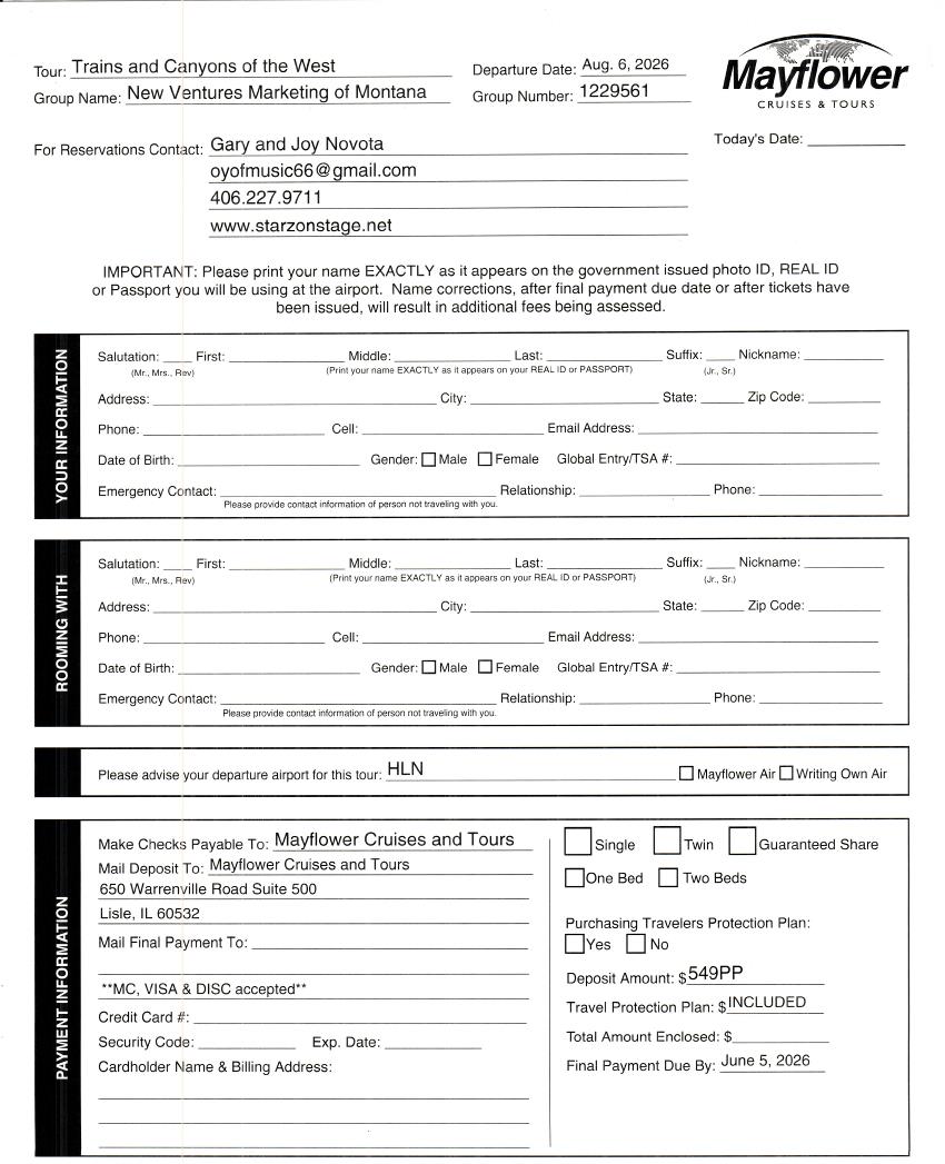 Or Mail it to NVM Travel Club406, P.O. Box 1880, East Helena, MT 59635