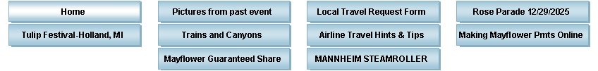 1 – Use the sign-up sheet for each bus trip 2 – PLEASE SECURE ONE PAYMENT FOR ONE EVENT OR TRIP WITH ONE CHECK. (If a husband/wife or 2 partners are going on the same trip/event, one check payment is acceptable. It’s important to not bundle multiple trips into one check payment.) 3 – Checks are preferred; PAY PAL can be used via an invoice emailed to you so we do not handle your credit card. A small convenience fee is added automatically by Pay Pal. 4 – Any trip can be cancelled if we don’t have enough passengers to pay for the over-all trip. Your checks are HELD for deposit until a trip is firm for a “GO”. 5 – If a trip is cancelled, we will either return or shred your check payment. 6 – Check website for information & details (we try to keep it up-to-date as much as possible) 7 – Call or email us with questions |