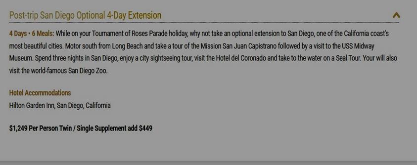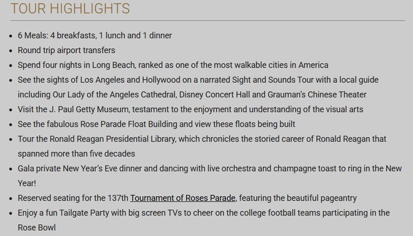 Tournament of Roses Parade Dec. 29, 20255 Days - 6 Meals |